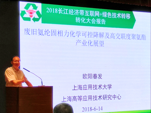 6月14日,2018长江经济带互联网+绿色技术转移转化大会在上海召开,会议由协会理事单位上海应用技术大学等主办,市科委等为指导单位,上海市聚氨酯工业协会、长江经济带11省市技术转移和创新研究领域政府和企事业相关单位为协办单位。